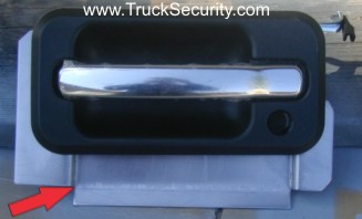 If the thief tries to pry in under the handle, the plate is inside the door blocking access to the lock rods and other components.