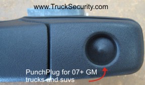 The bottom photo to the right shows an 07+ GM truck/suv handle with the PunchPlug ™ installed.